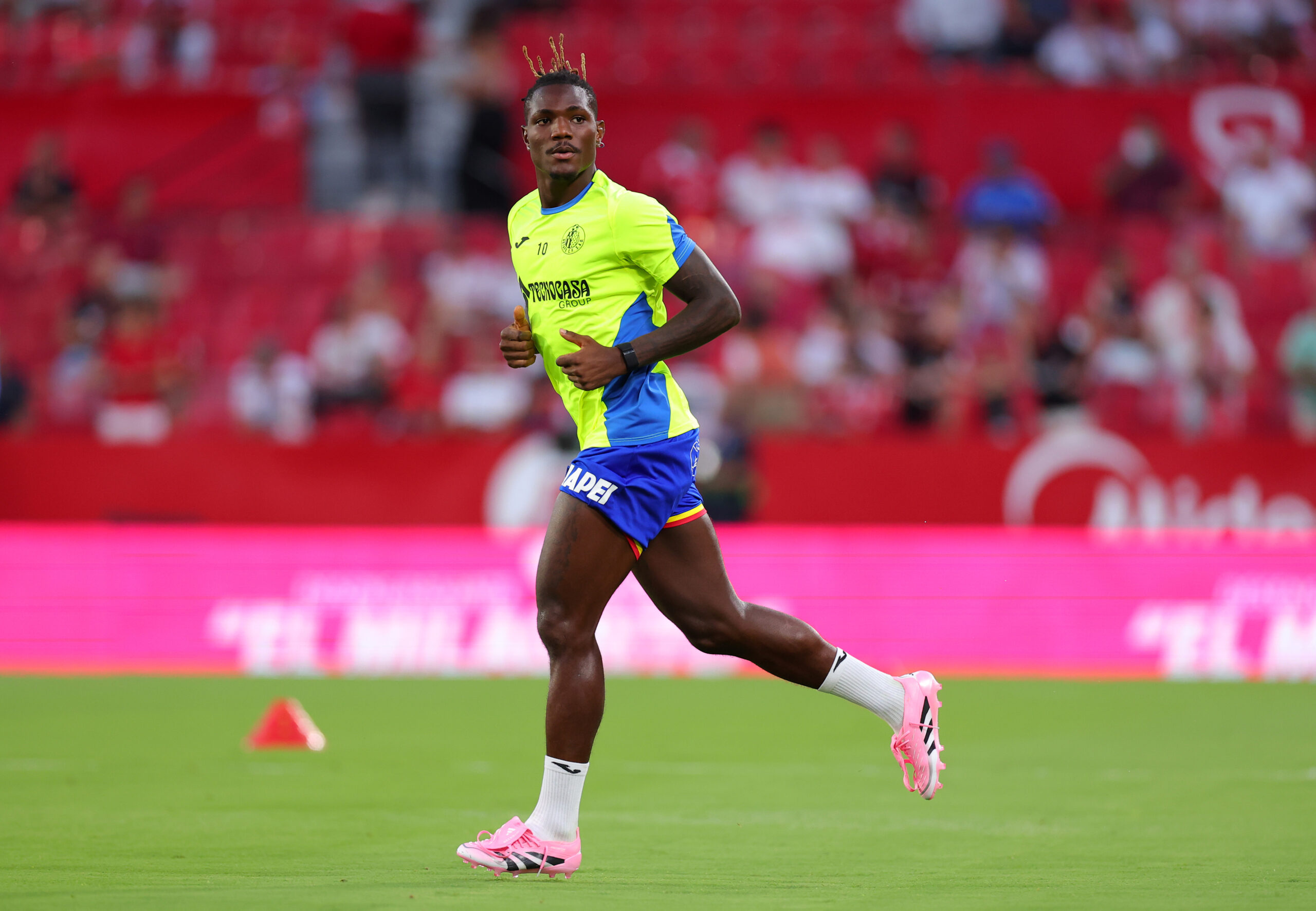 SEVILLE, SPAIN - AUGUST 25: Chrisantus Uche of Getafe CF looks on during the LaLiga EA Sports match between Sevilla FC and Getafe CF at Estadio Ramon Sanchez Pizjuan on August 25, 2025 in Seville, Spain. (Photo by Fran Santiago/Getty Images)